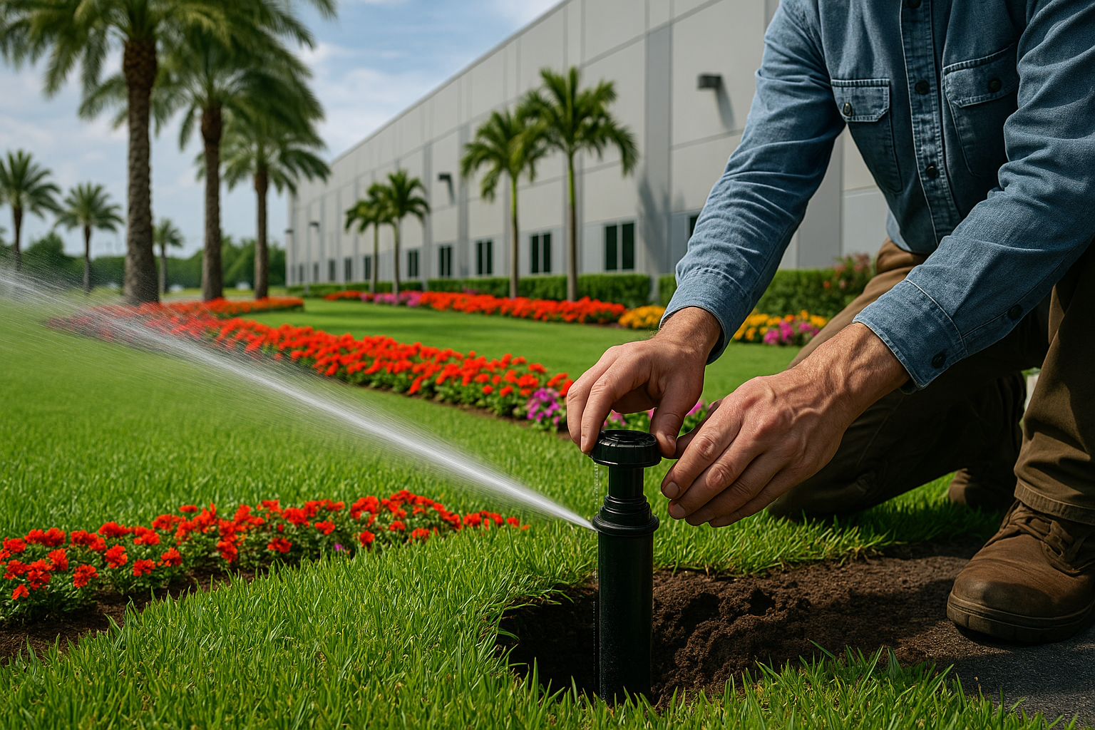 At Suncoast Irrigation & Landscaping, we understand the unique challenges that commercial and industrial properties face when it comes to irrigation and landscaping. From maintaining curb appeal at office parks to optimizing water usage across large industrial sites, our team delivers tailored solutions that combine durability, efficiency, and visual impact.
